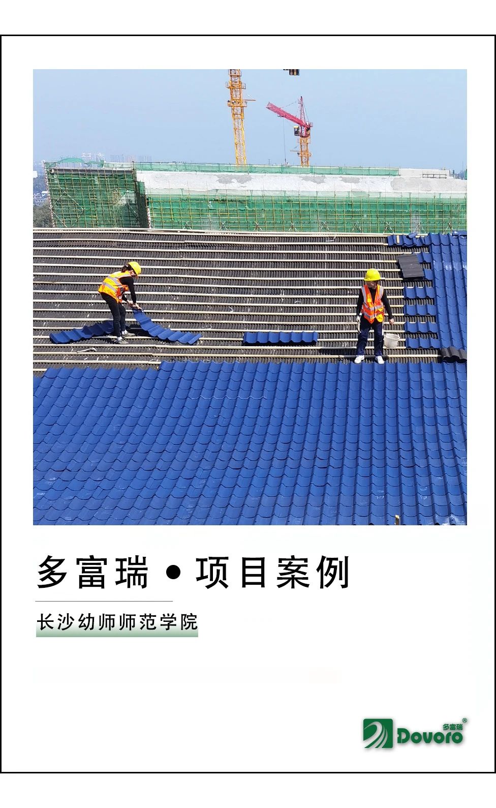 本項目為長沙幼師高等專科學院,使用“幻彩”波形瀝青瓦和波形瀝青防水板組合施工,總施工面積約40000平米。2024-08-02 -