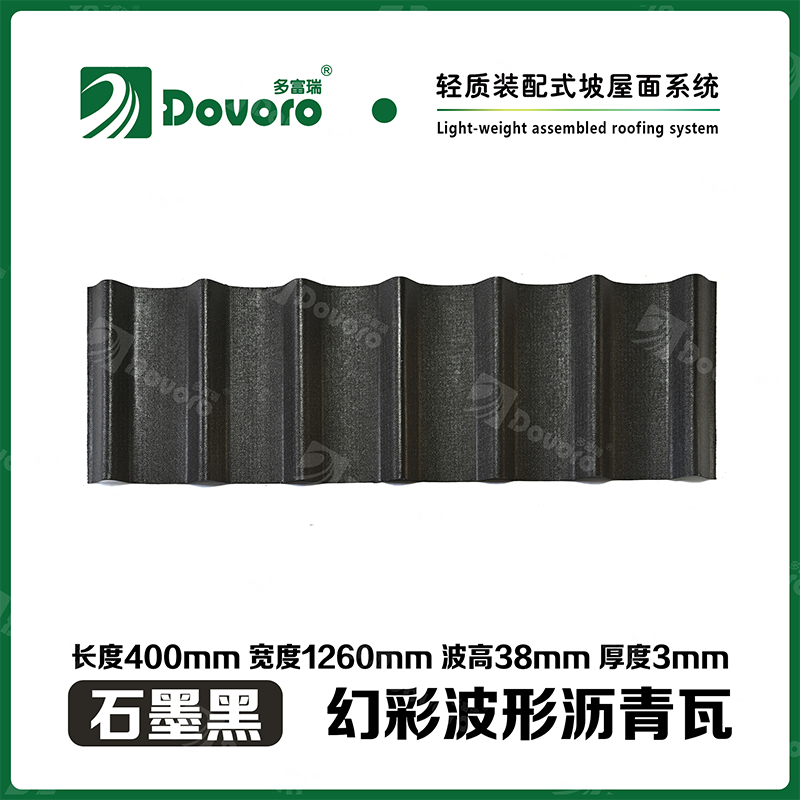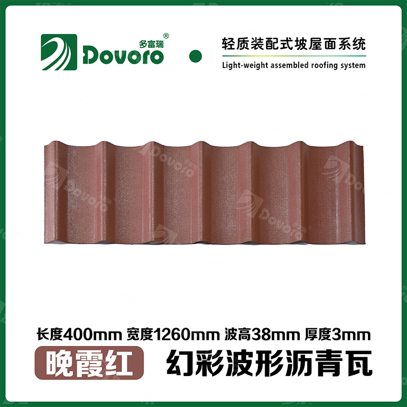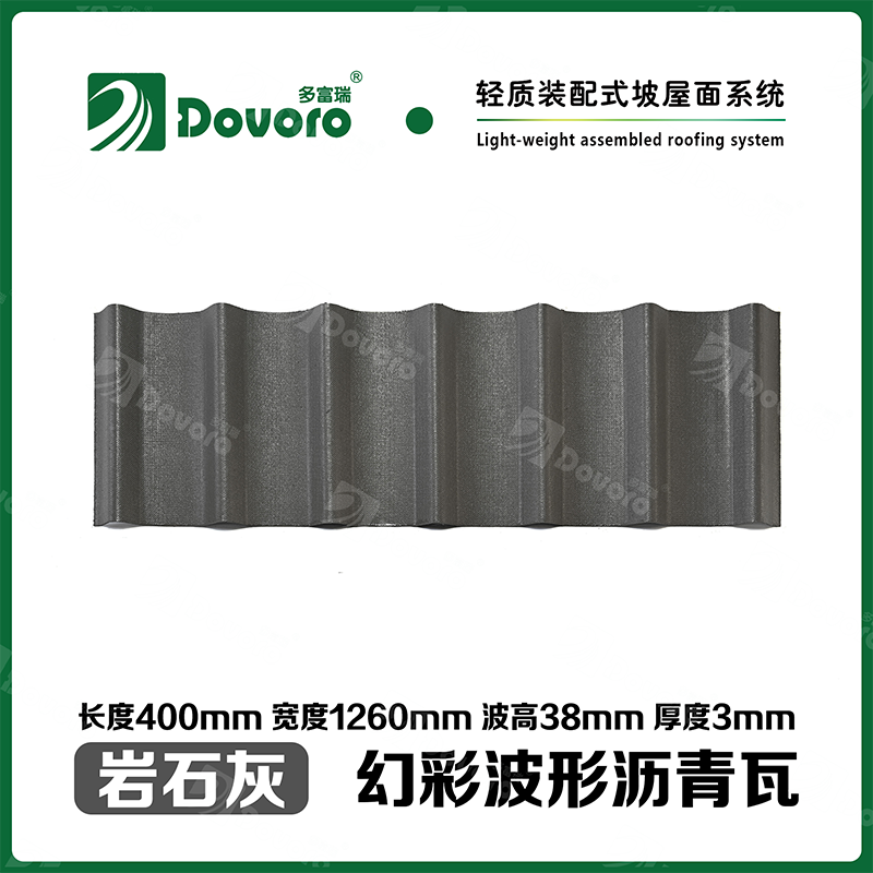 幻彩波形瀝青瓦主要用于高檔別墅和住宅,尤其是對(duì)美觀要求較高的坡屋面工程。為立體拱形的節(jié)能環(huán)保輕型屋面防水瓦材。應(yīng)用于坡度大于等于10°且小于75°的建筑屋面。