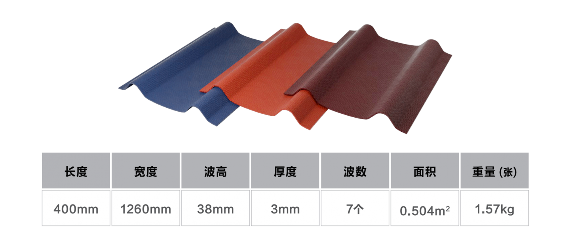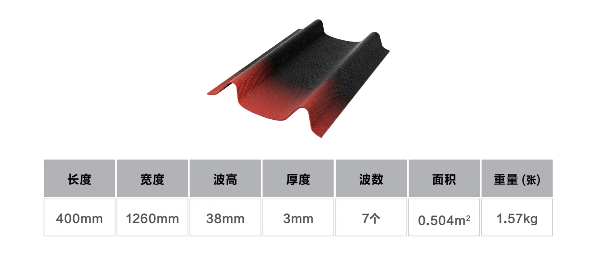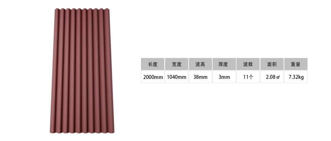 瀝青材質防水效果非常出色,有效的搭接進一步保證防水。采用波浪形造型有效帶走瓦下熱量和潮氣,隔熱和通風除濕效果極佳。