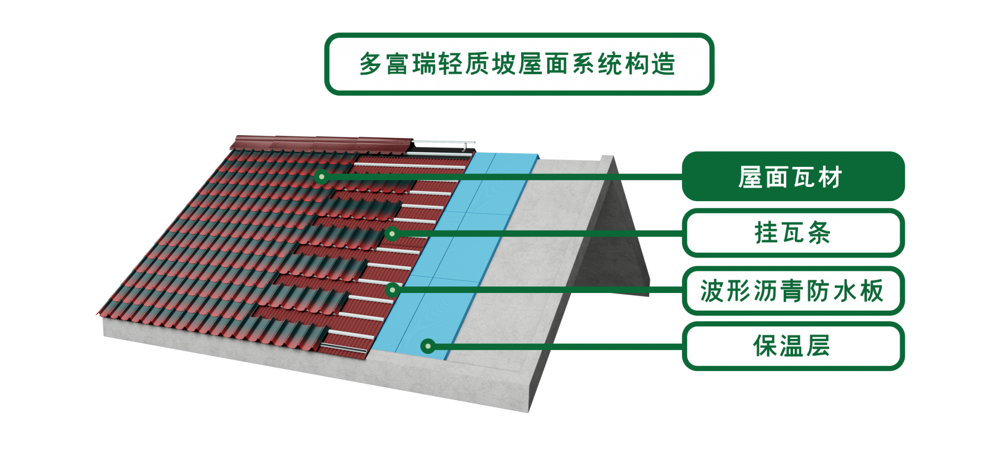 波形瀝青防水板可搭配各類瓦材面層,系統結構簡潔、施工方便快速度。