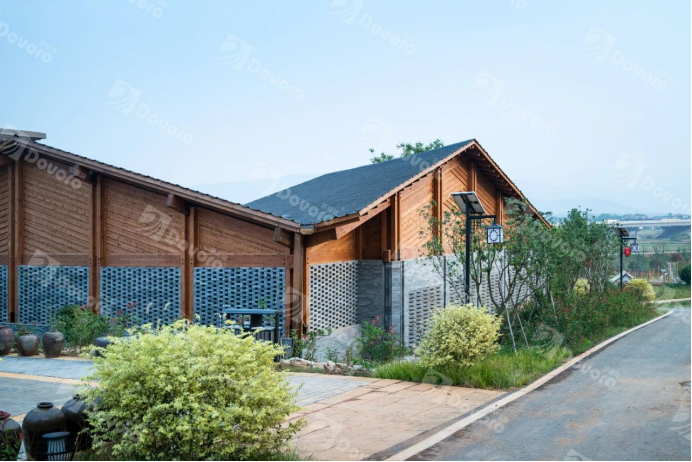 項(xiàng)目中的芳華小院、黨群服務(wù)中心、劉寅紀(jì)念館為全木結(jié)構(gòu)建筑,采用了幻影波形瀝青瓦,達(dá)到整體風(fēng)格造型的統(tǒng)一。