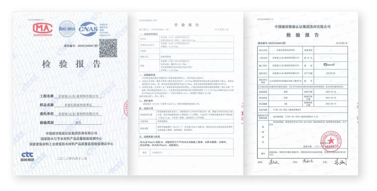 在防水方面,波形瀝青瓦采用瀝青作為原材料之一,大大提升瓦材的防水效果。在造型設計上,使用波浪的排水造型,防排結合,提升屋面整體的防水性能。波形瀝青瓦中瀝青含量≥40%,吸水率≤10%,符合T/CWA201-2020團體標準,具有極強的防水性能。通過22次凍融循環測試,在極端寒冷的氣候條件下,也可以維持瓦材的優異性能,持續地為屋面遮風擋雨。
