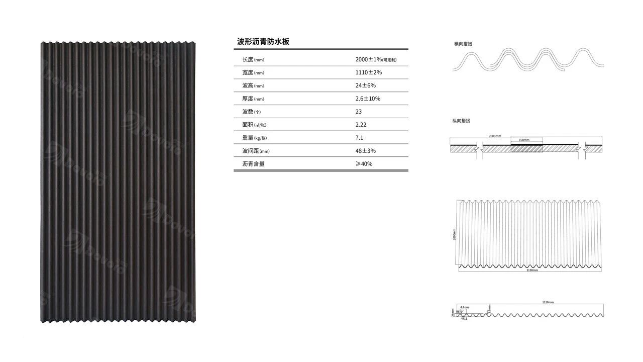 作為屋面防水的第二道屏障,波形瀝青防水板采用防排結合的設計,擁有更加陡峭的波峰,雨水排出速度更快,在遇到極端暴雨的情況下,即使有部分雨水來不及排出屋面,從上層瓦材滲入下方,也可以通過波形瀝青防水板繼續排出屋面。兩層屋面、雙重防水,避免形成積水產生漏水。