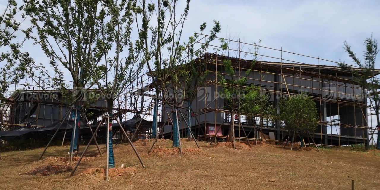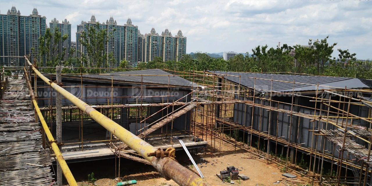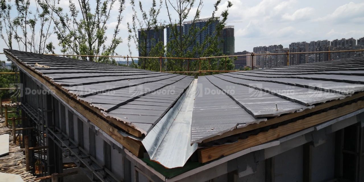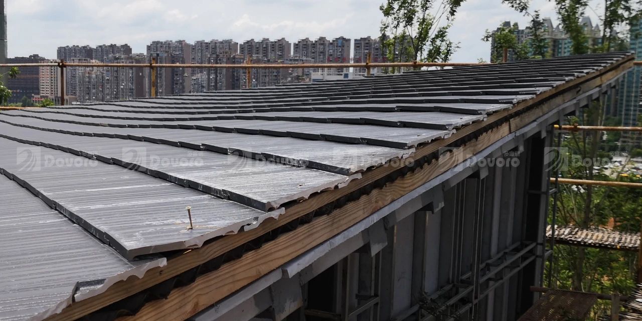 本項目中建筑采用鋼結構裝配式設計,波形瀝青防水板可以在各類屋面基層上快速安裝。