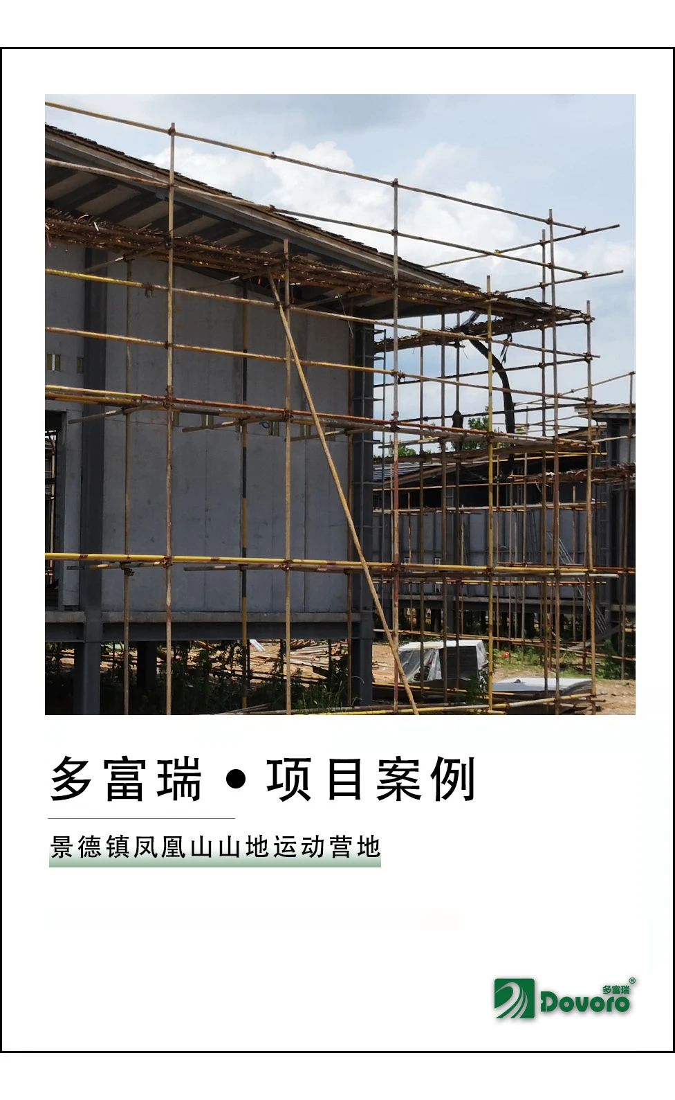 鳳凰山山地運動營地位于江西省景德鎮珠山區,是一個集休閑運動、野外露營、生態旅游為一體的城市公園。本項目使用波形瀝青防水板作為瓦材下覆層施工,總施工面積約3500平米。