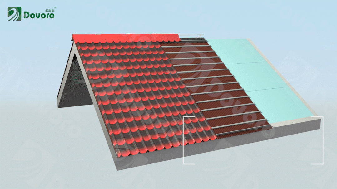 采用的波形防排結合的設計,有利于雨水快速排出屋面。與瓦材之間的通風空間,可以帶走瓦下熱量和潮氣,隔熱和除濕效果極佳。