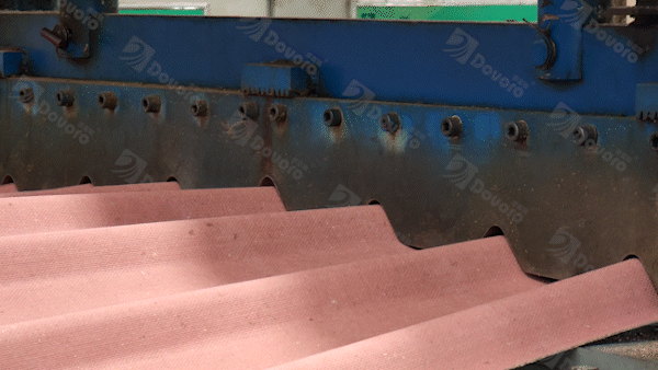 至此,一塊波形瀝青瓦就已經(jīng)生產(chǎn)完畢。