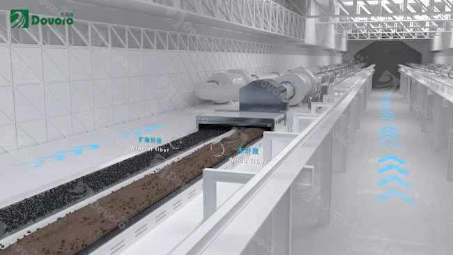 礦物纖維與木纖維作為原材料進(jìn)入多富瑞的生產(chǎn)基地,經(jīng)過攪拌罐初步的加水稀釋攪拌,礦物纖維與木纖維得到充分混合,成為紙漿,存放于纖維儲(chǔ)存罐中。