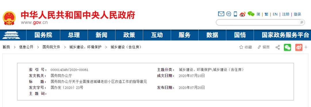 2020年7月20日國務院辦公廳發(fā)布《關于全面推進城鎮(zhèn)老舊小區(qū)改造工作的指導意見(國辦發(fā)〔2020〕23號)》,指導意見中指出城鎮(zhèn)老舊小區(qū)改造是重大民生工程和發(fā)展工程,對滿足人民群眾美好生活需要、推動惠民生擴內需、推進城市更新和開發(fā)建設方式轉型、促進經(jīng)濟高質量發(fā)展具有十分重要的意義。