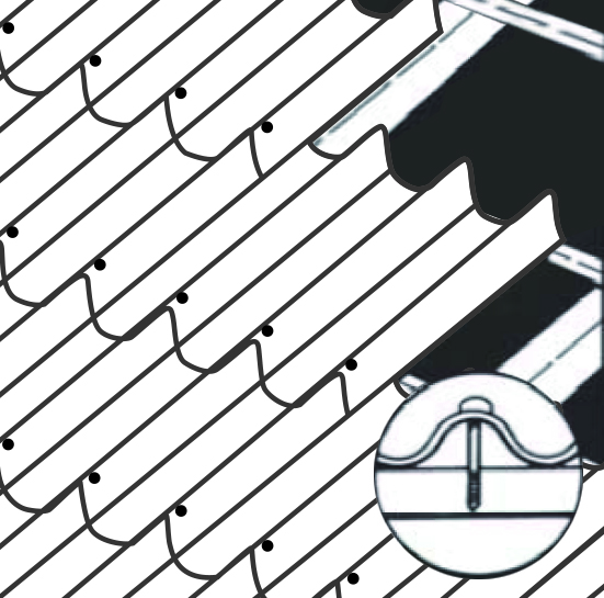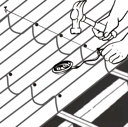 根據掛瓦條安裝位置彈線,用專用瓦釘將瓦材固定在掛瓦條上,瓦釘固定在波峰處,并垂直于屋面。